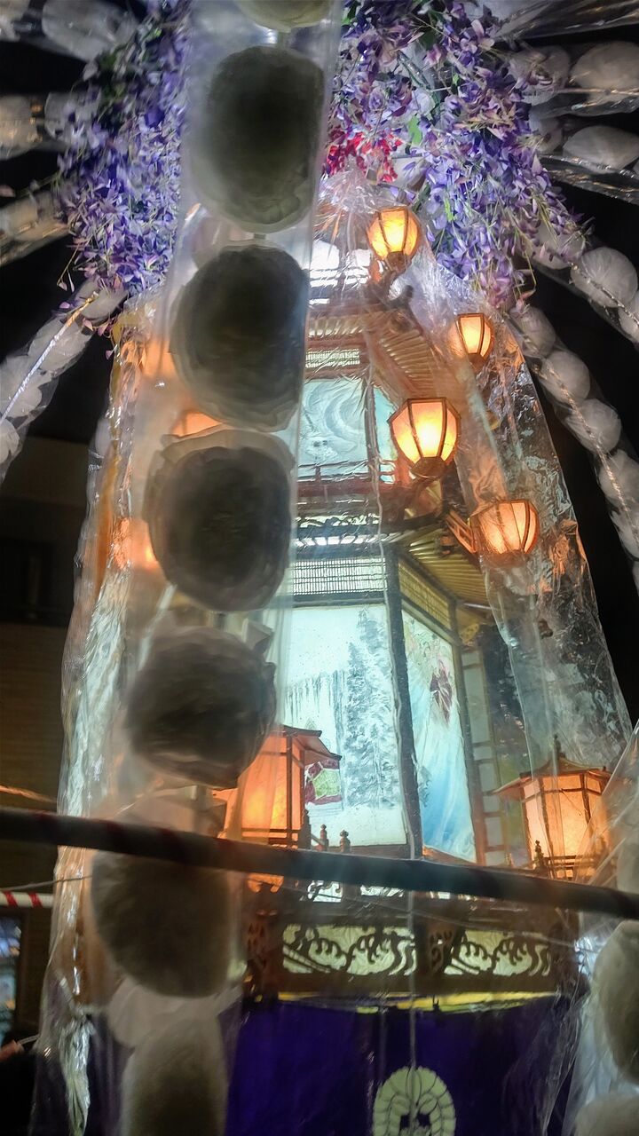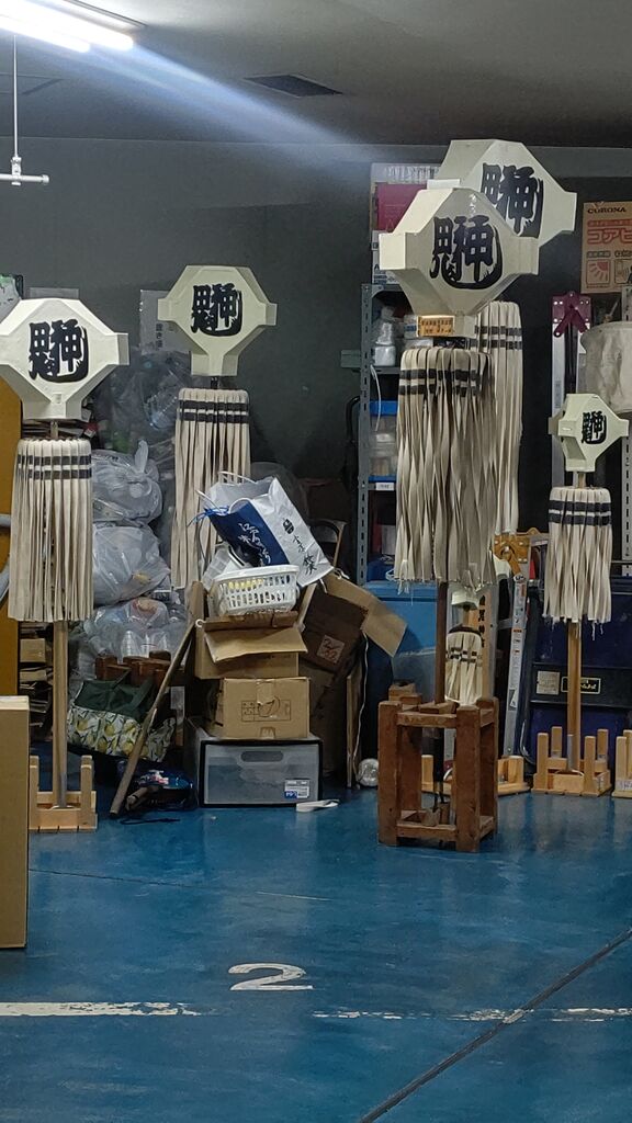19時過ぎ位にオモロを出るとお隣の建物の中に御会式で使う纏(まとい)が