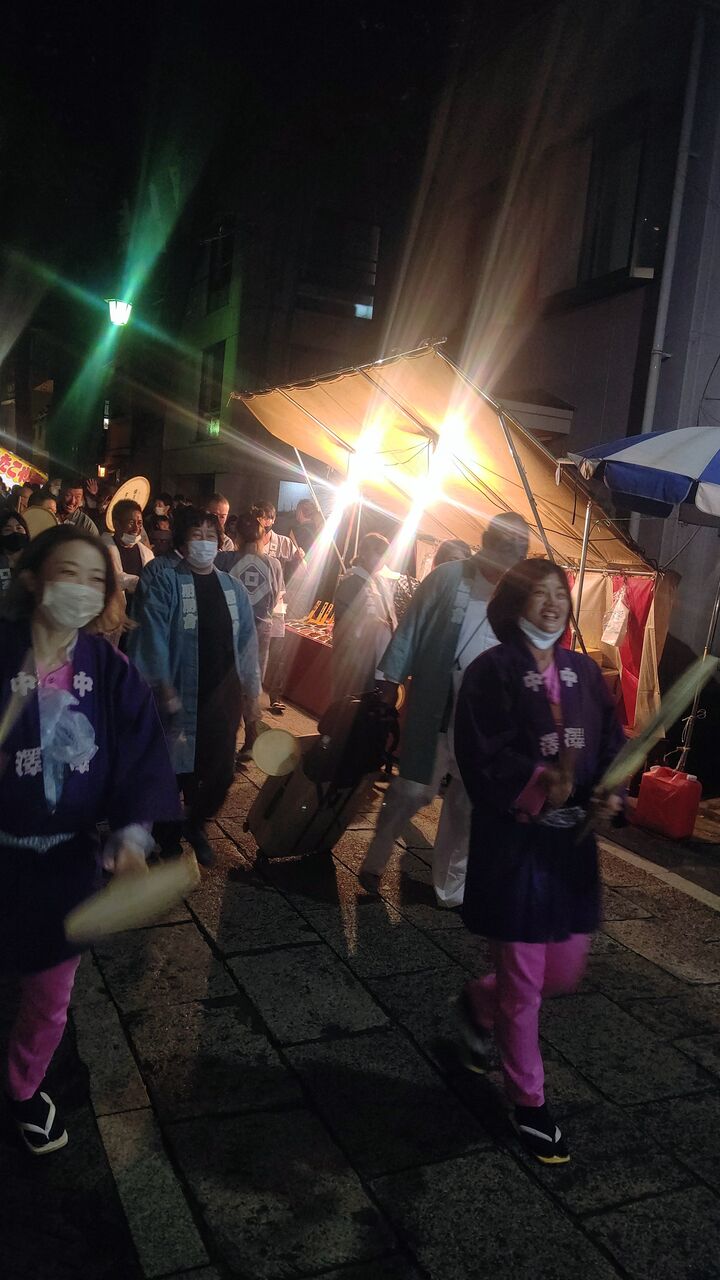 太鼓の音の掛け声と共に万灯行列のおなーりー。