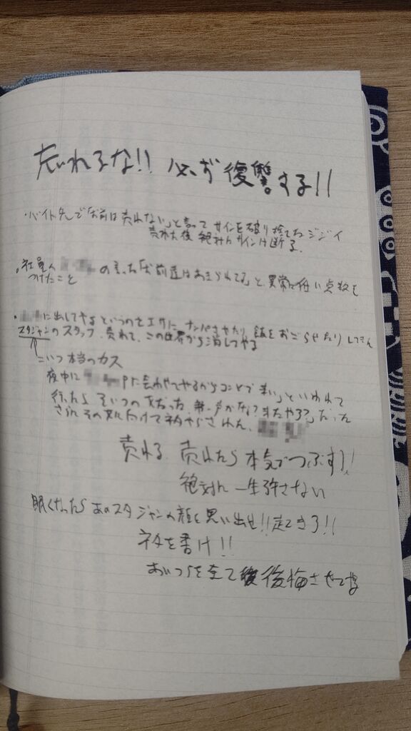 どうやってそいつに復讐してやろうかを書き殴ぐってあります。