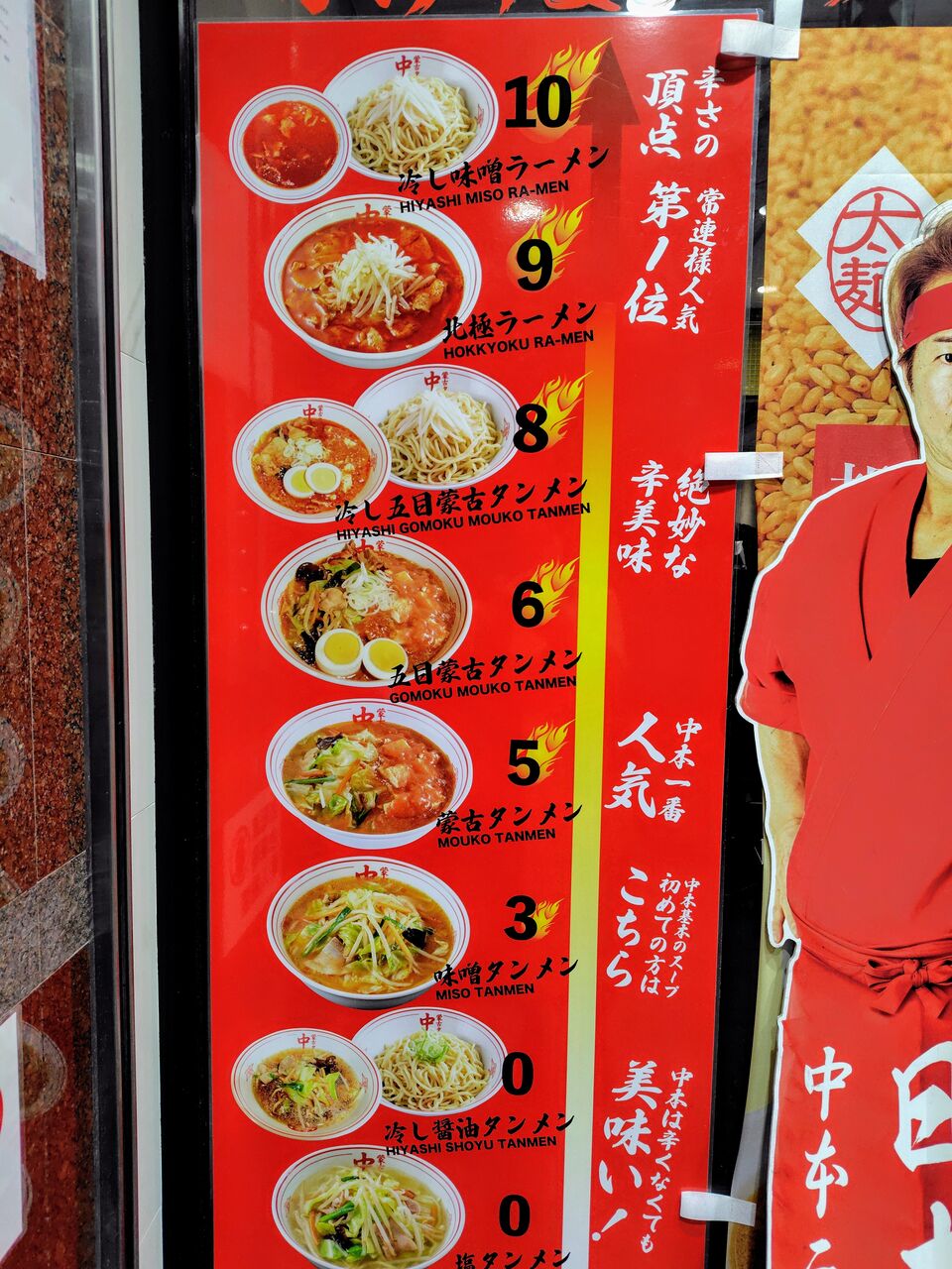 激辛タンメンで有名な中本さんですが、辛さにレベルがあり